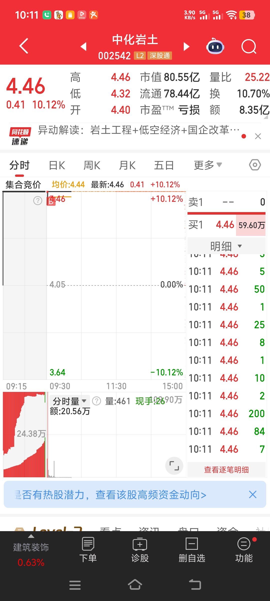 $中化岩土(SZ002542)$ 买入确定性,盈亏由市场决定