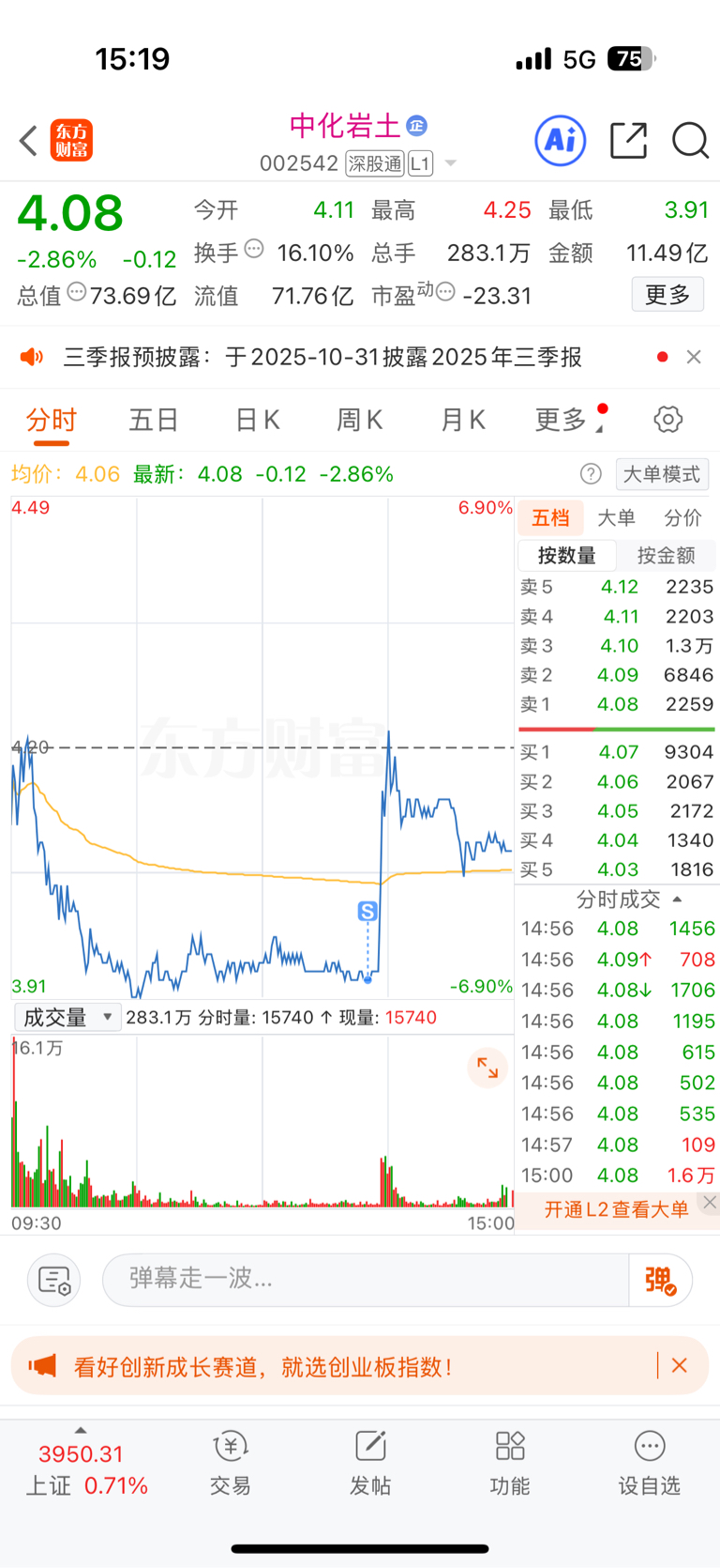 $中化岩土(SZ002542)$ 主力你踏马的就差我一万手吗?