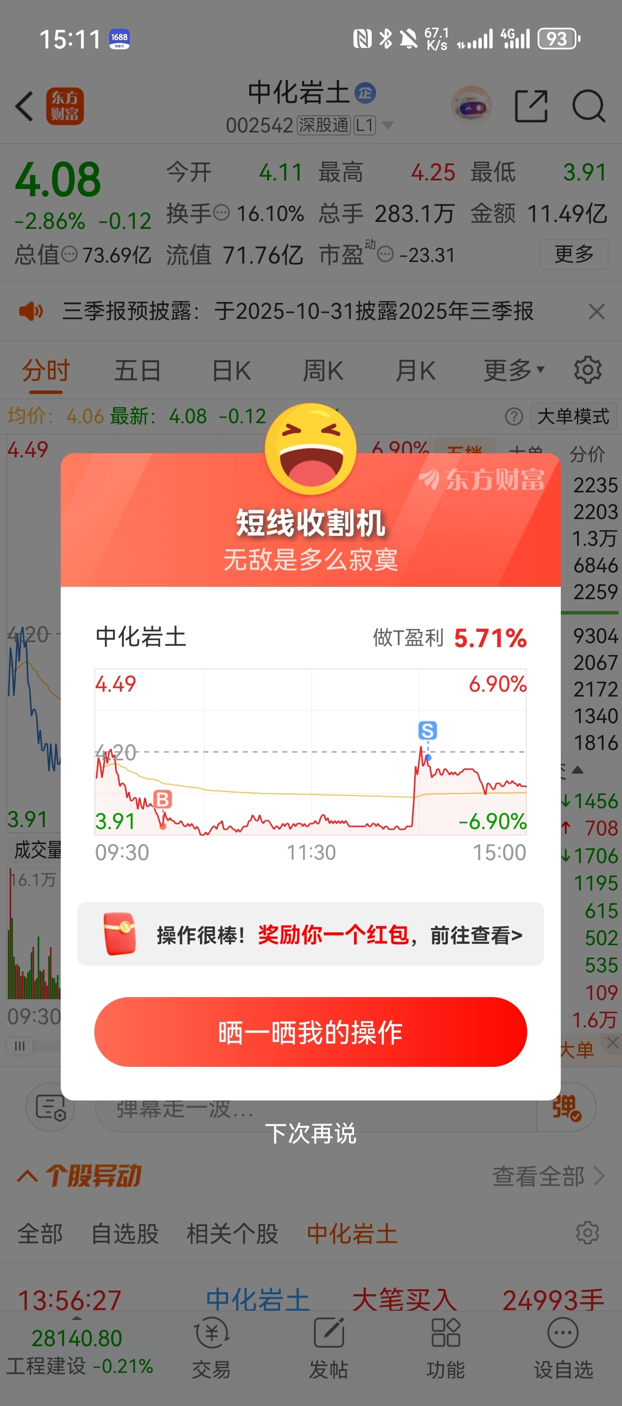 $中化岩土(SZ002542)$ 抗了昨天的大跌,今天还来,还好补仓了,吓死你爹了