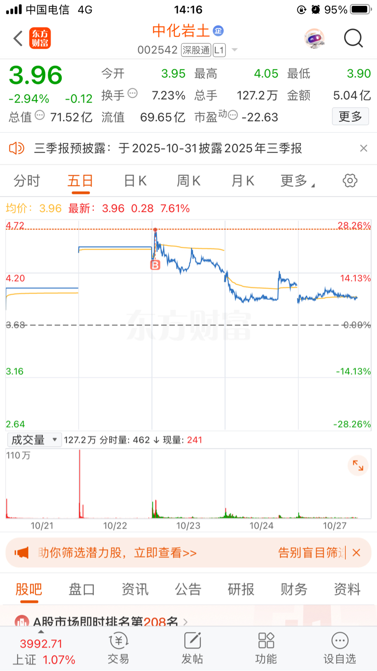 $中化岩土(SZ002542)$ 挂山顶了老铁,救救我