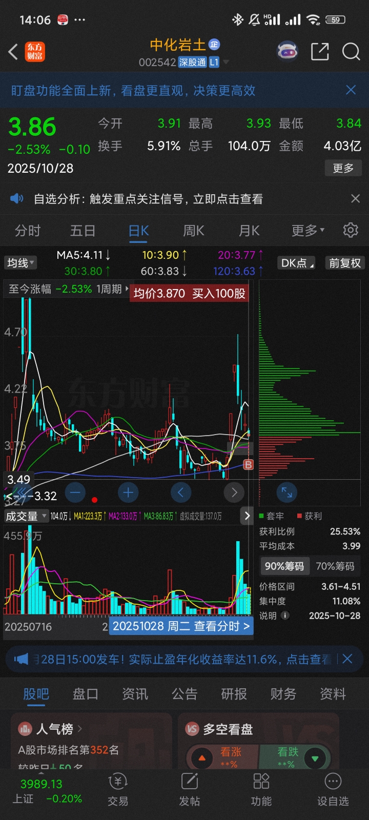 $中化岩土(SZ002542)$ 涨跌随意,看到st