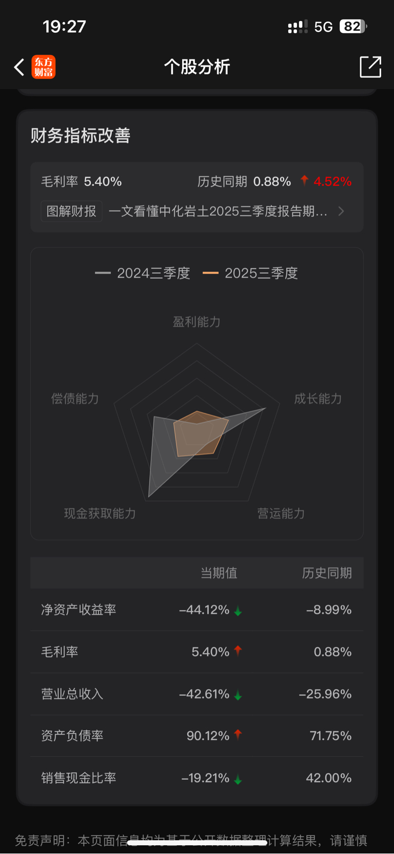 $中化岩土(SZ002542)$ 虽然亏损、本季度财务报表有改善、明天喜提天板