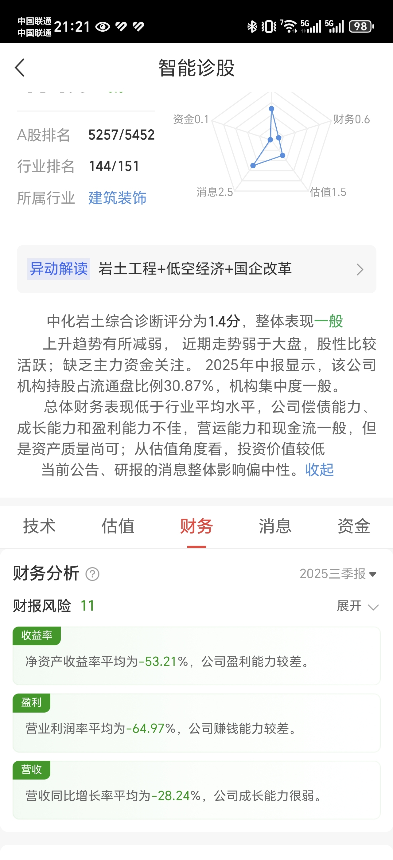 $中化岩土(SZ002542)$ 买进六天亏了十一个点