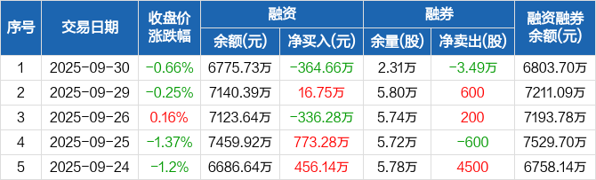 万和电气:融资净偿还364.66万元,融资余额6775.73万元(09-30)