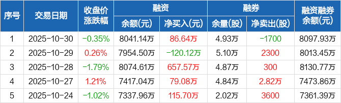 万和电气:融资净买入86.64万元,融资余额8041.14万元(10-30)
