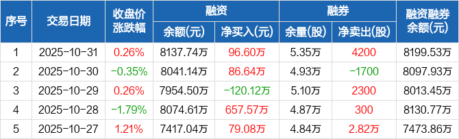 万和电气:融资净买入96.6万元,融资余额8137.74万元(10-31)