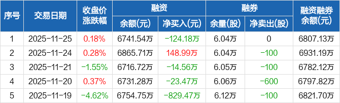 万和电气:融资净偿还124.18万元,融资余额6741.54万元(11-25)