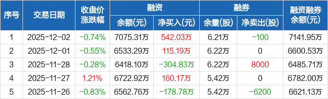 万和电气:融资净买入542.03万元,融资余额7075.31万元(12-02)