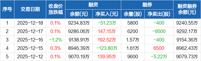 万和电气:融资净偿还51.23万元,融资余额9234.83万元(12-18)