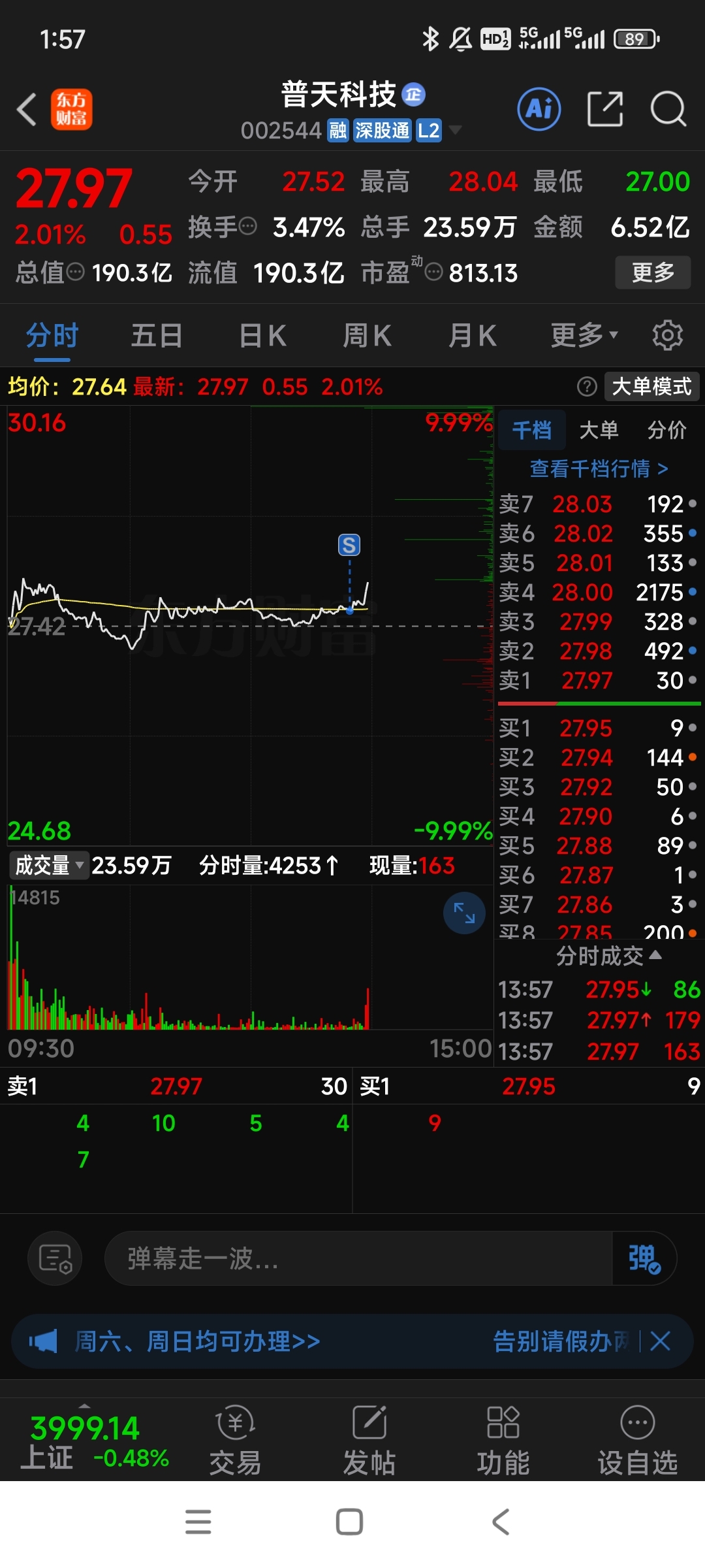 $普天科技(SZ002544)$ 我犯天条了?还是整个股票就是我一个散户?我一卖就拉?