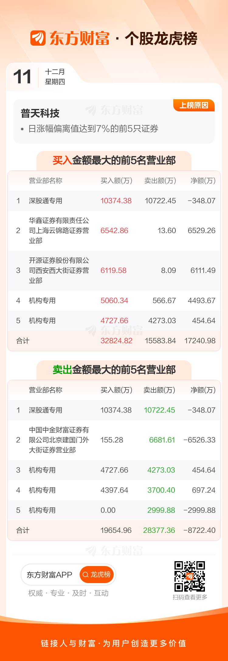 普天科技(002544)龙虎榜数据(12-11)