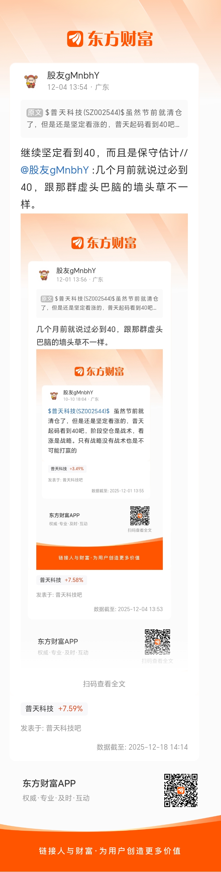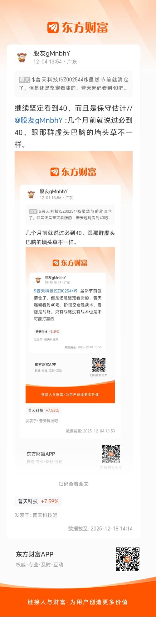 $普天科技(SZ002544)$ 虽然节前就清仓了,但是还是坚定看涨的,普天起码看到40吧,阶段空仓是战术,看涨是战略。只有战略没有战术也是不可能打赢的