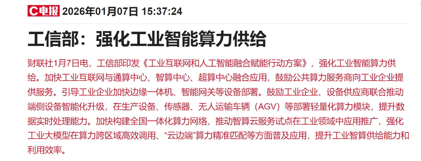 【工信部:强化工业智能算力供给 引导工业企业加快边缘一体机、智能网关等设备部署】
