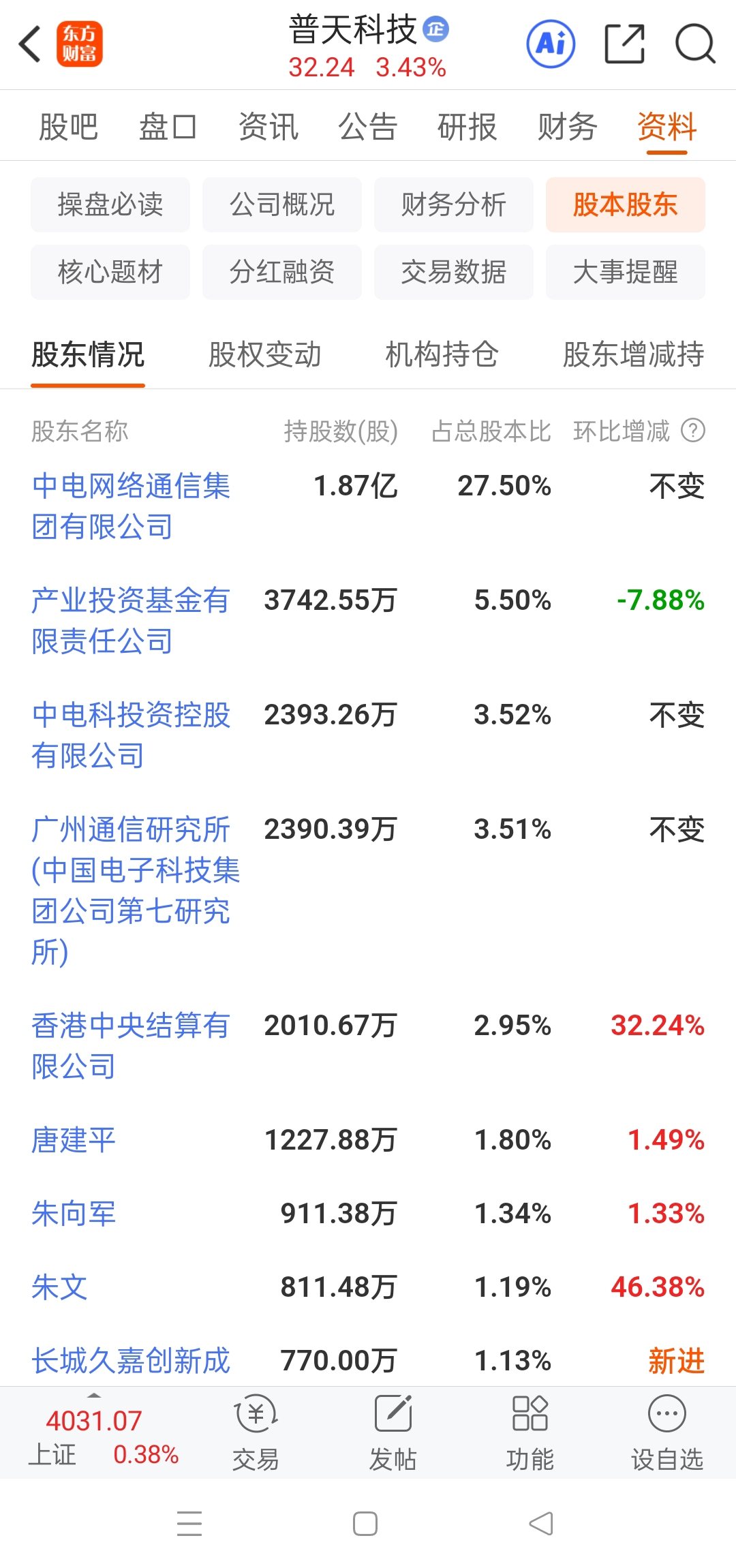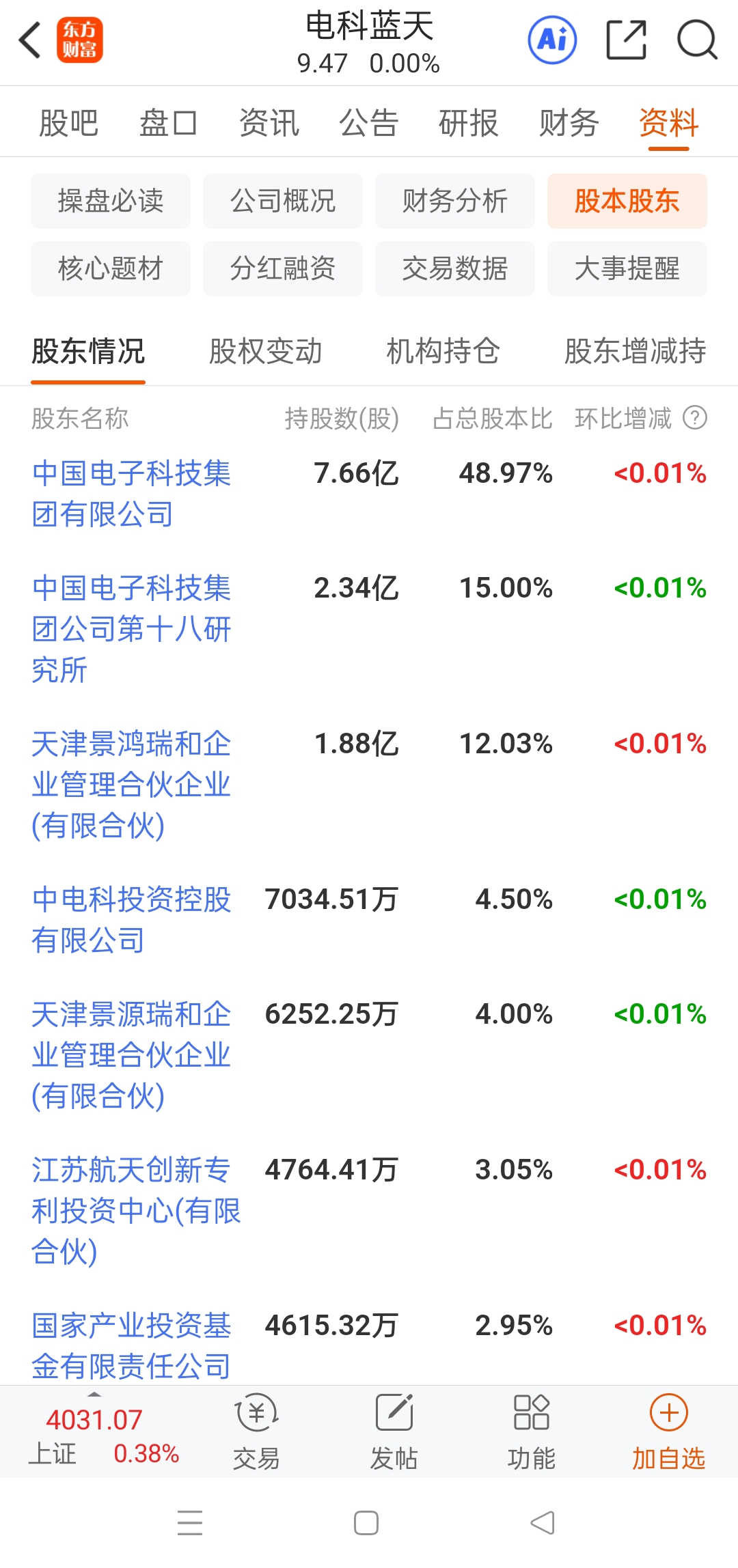 坚信太空算力第一股会一飞冲天,跟即将上市的太空股电科蓝天有着同样的前十大股东