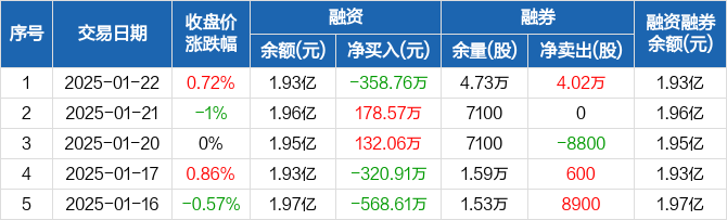 东方铁塔:融资净偿还358.76万元,融资余额1.93亿元(01-22)