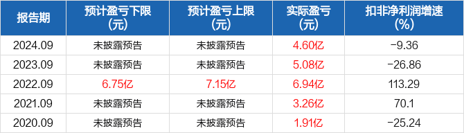 近5年三季报扣非净利润预测情况