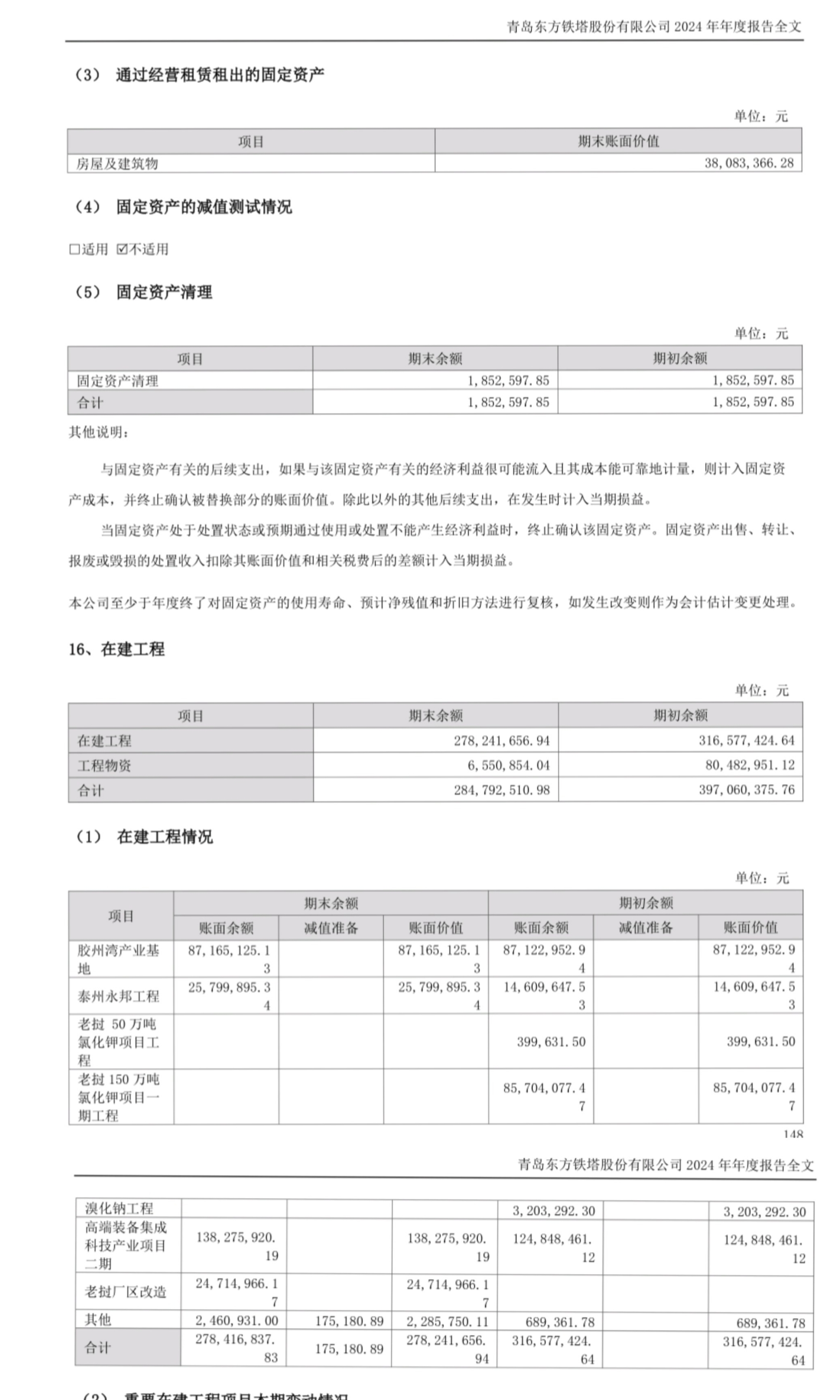 首先2024年报显示50万吨和150万吨一期项目基本完成,还能见到项目最后清单。