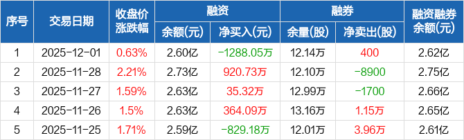 东方铁塔:融资净偿还1288.05万元,融资余额2.6亿元(12-01)