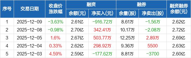东方铁塔:融资净偿还916.72万元,融资余额2.61亿元(12-09)