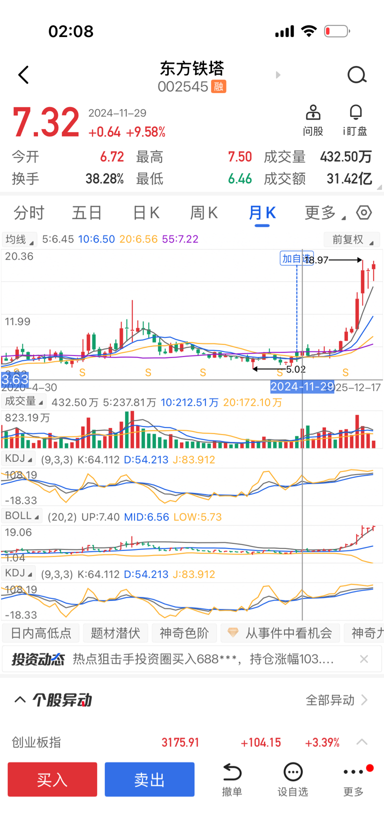 $东方铁塔(SZ002545)$ 24年朋友叫我买,那会真是半死不活的,每天几分钱玩一天