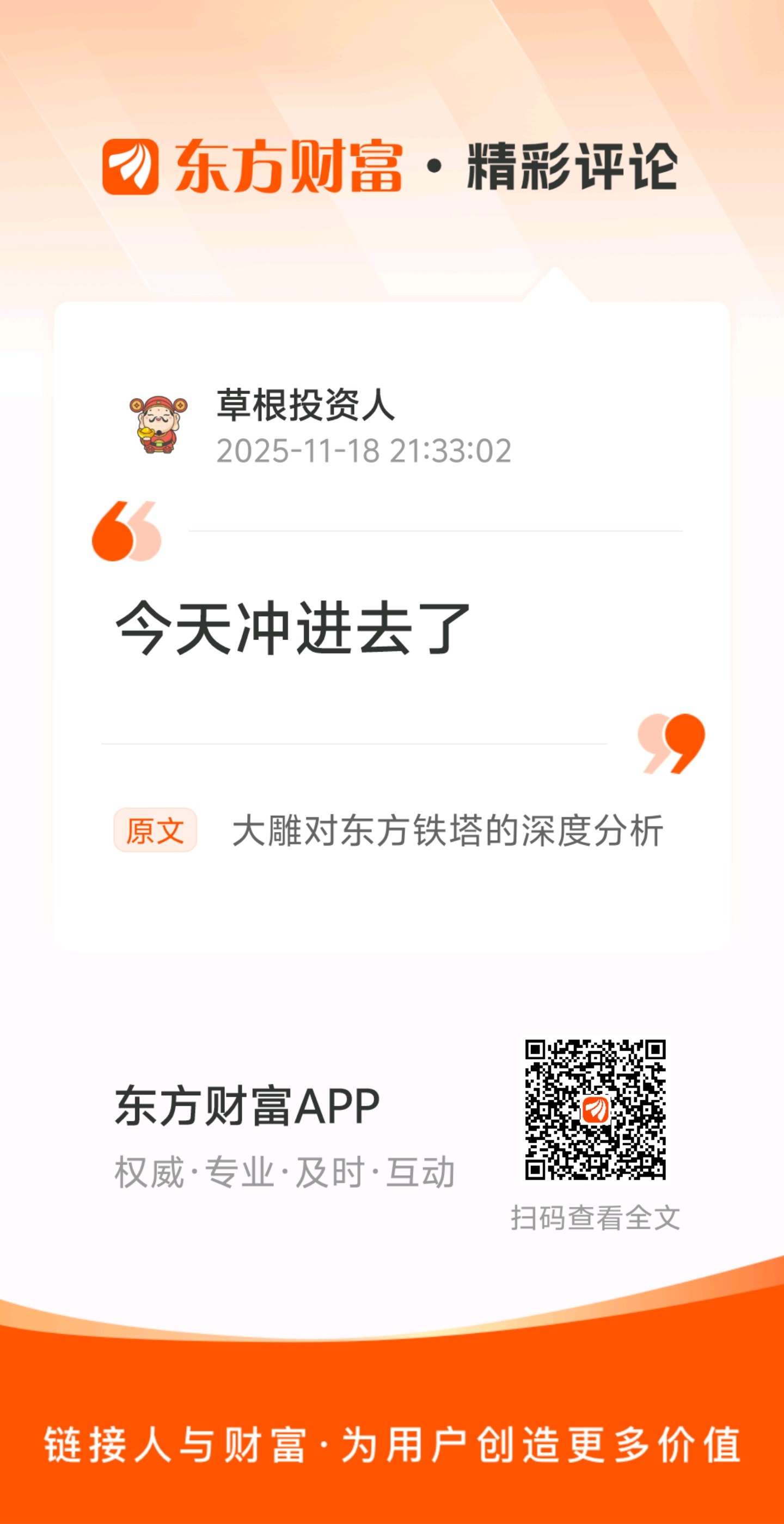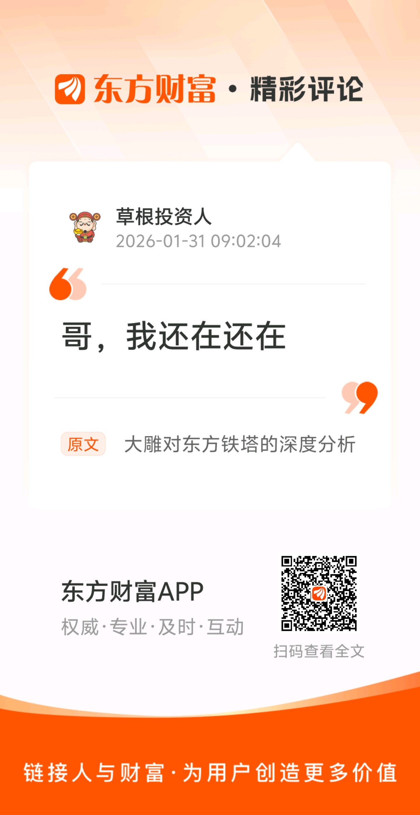 温馨提示: 1.根据《证券法》规定,禁止编造、传播虚假信息或者误导性信息,扰乱证券市场;2.用户在本社区发表的所有资料、言论等仅代表个人观点,与本网站立场无关,不对您构成任何投资建议。用户应基于自己的独立判断,自行决定证券投资并承担相应风险。《东方财富社区管理规定》