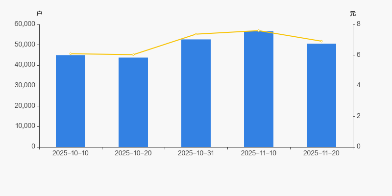 2025年10月10日至今,公司股东户数显著增长,区间涨幅为12.44%。2025年10月10日至2025年11月20日区间股价上涨13.46%。