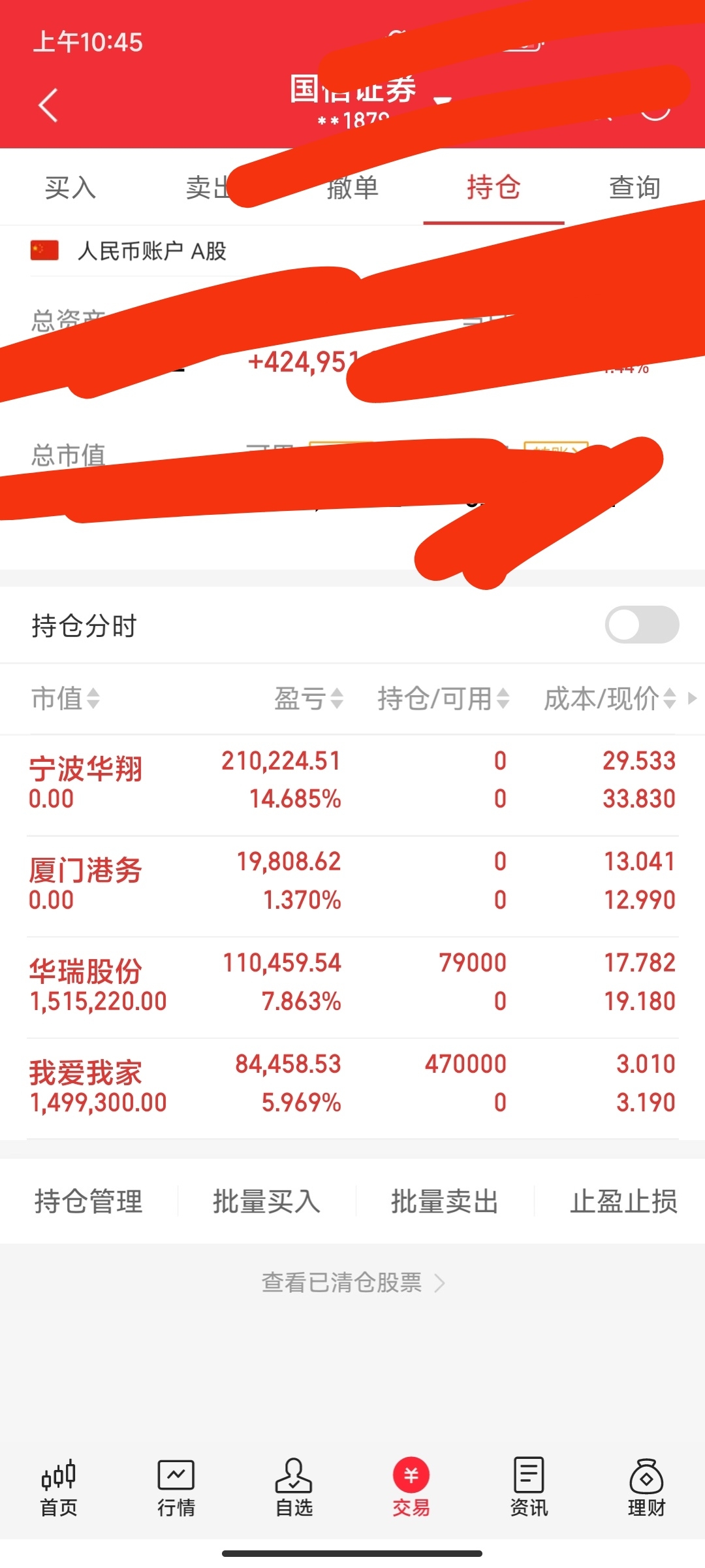 大家好,更新一下今日持仓。将宁波华翔止盈出局,拿下14个点新介入华瑞股份和我爱我