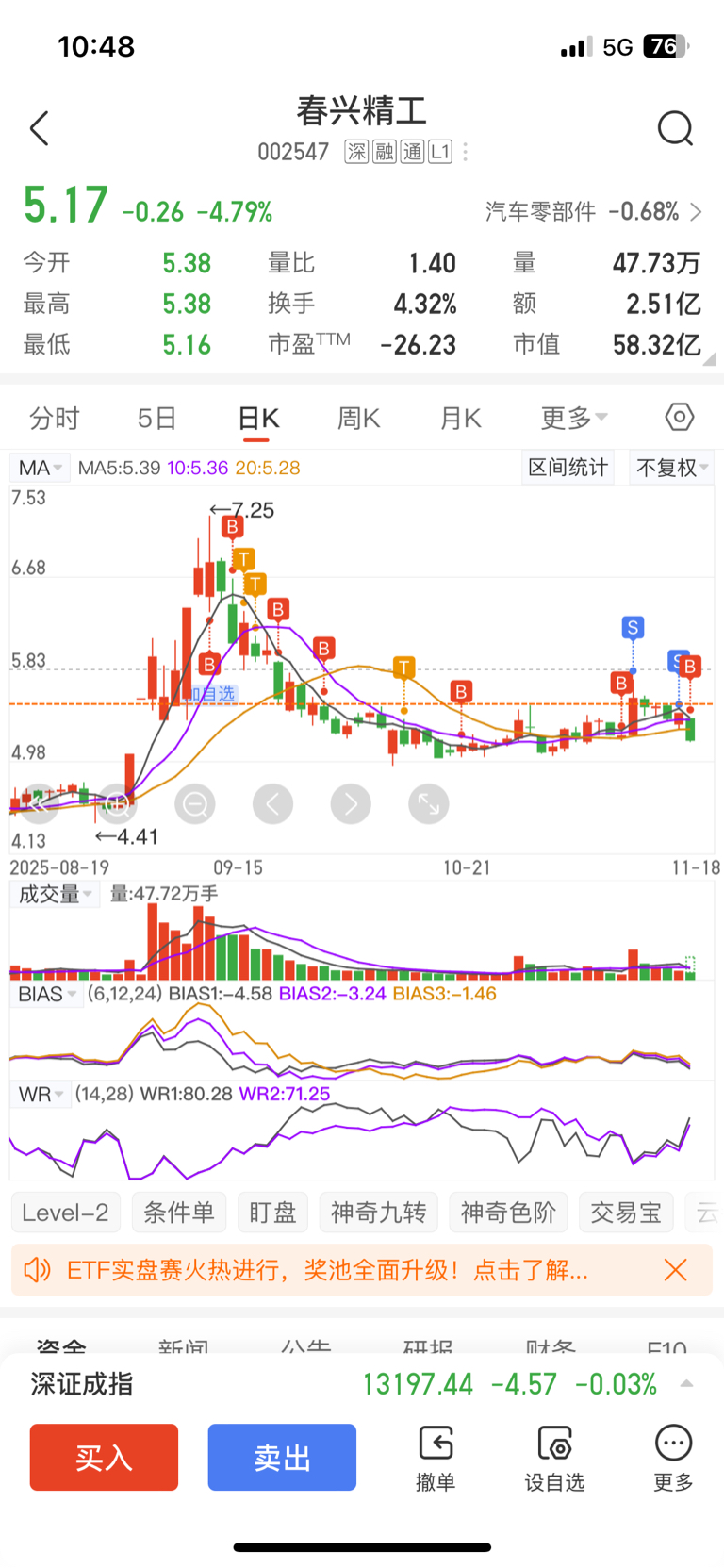 $春兴精工(SZ002547)$ 昨天就留了一手,今天接回来了 突然觉得自己真棒