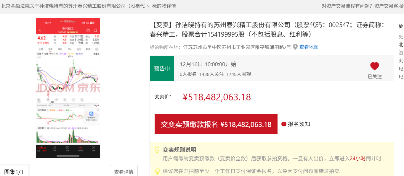 春哥又上拍了,京东法拍,涉及控股权变更