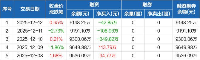春兴精工:融资余额9148.25万元,创近一年新低(12-12)