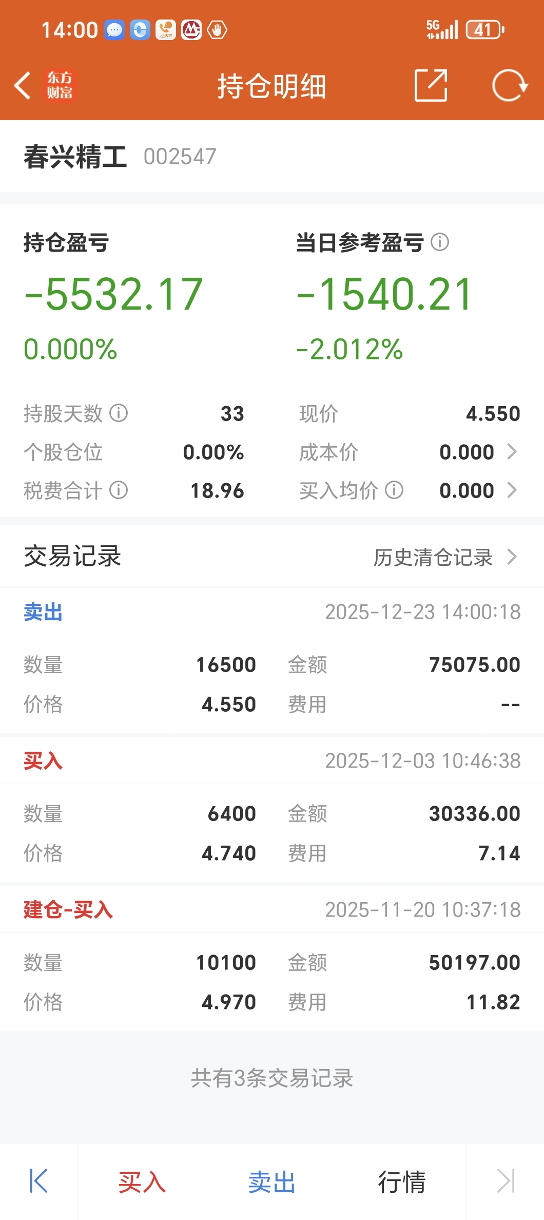 $春兴精工(SZ002547)$ 拿去发财吧,本来想你站上4.75左右的,4.56都稳不住,一直是卖盘。即使止损5000支股里面,找一个同样跌2个点的票,随便换一个,都比你安全。