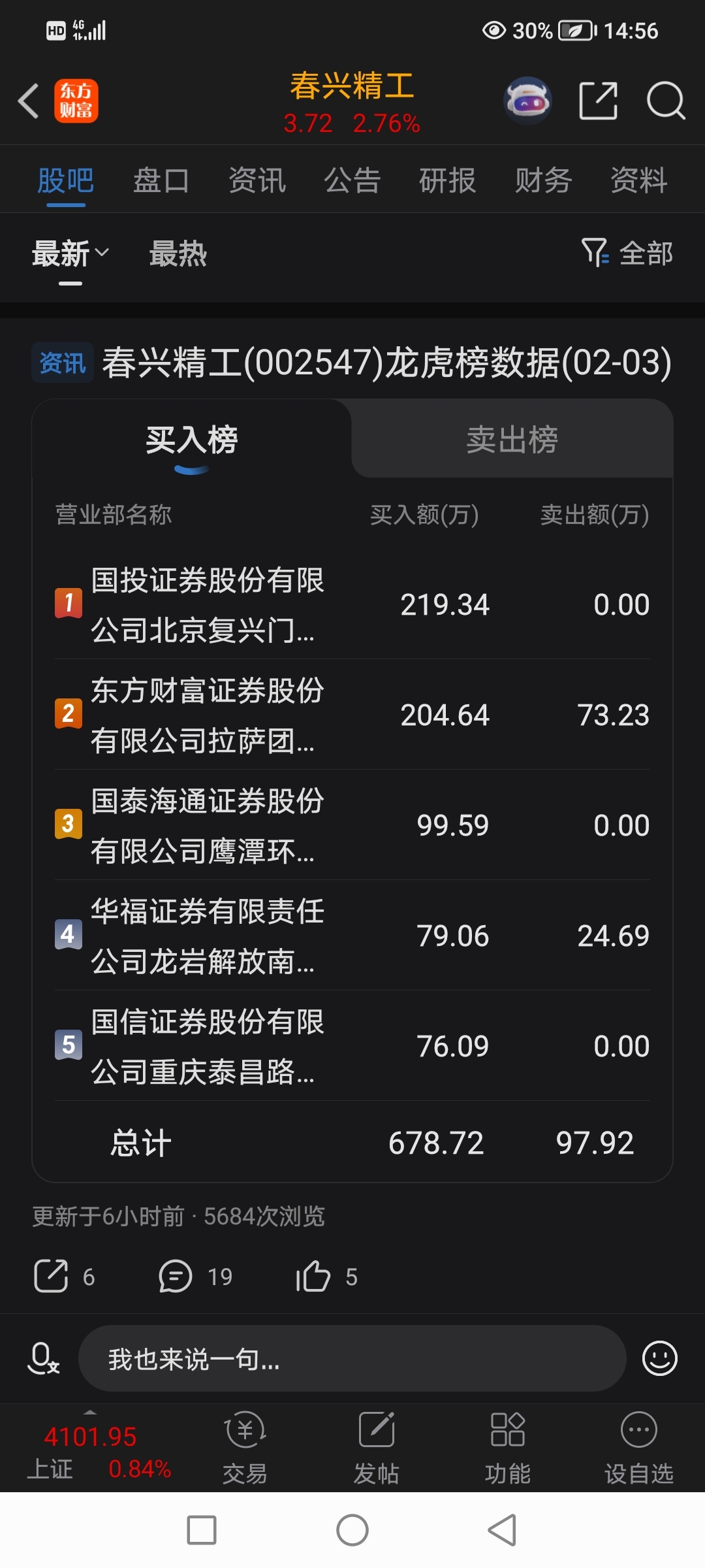温馨提示: 1.根据《证券法》规定,禁止编造、传播虚假信息或者误导性信息,扰乱证券市场;2.用户在本社区发表的所有资料、言论等仅代表个人观点,与本网站立场无关,不对您构成任何投资建议。用户应基于自己的独立判断,自行决定证券投资并承担相应风险。《东方财富社区管理规定》