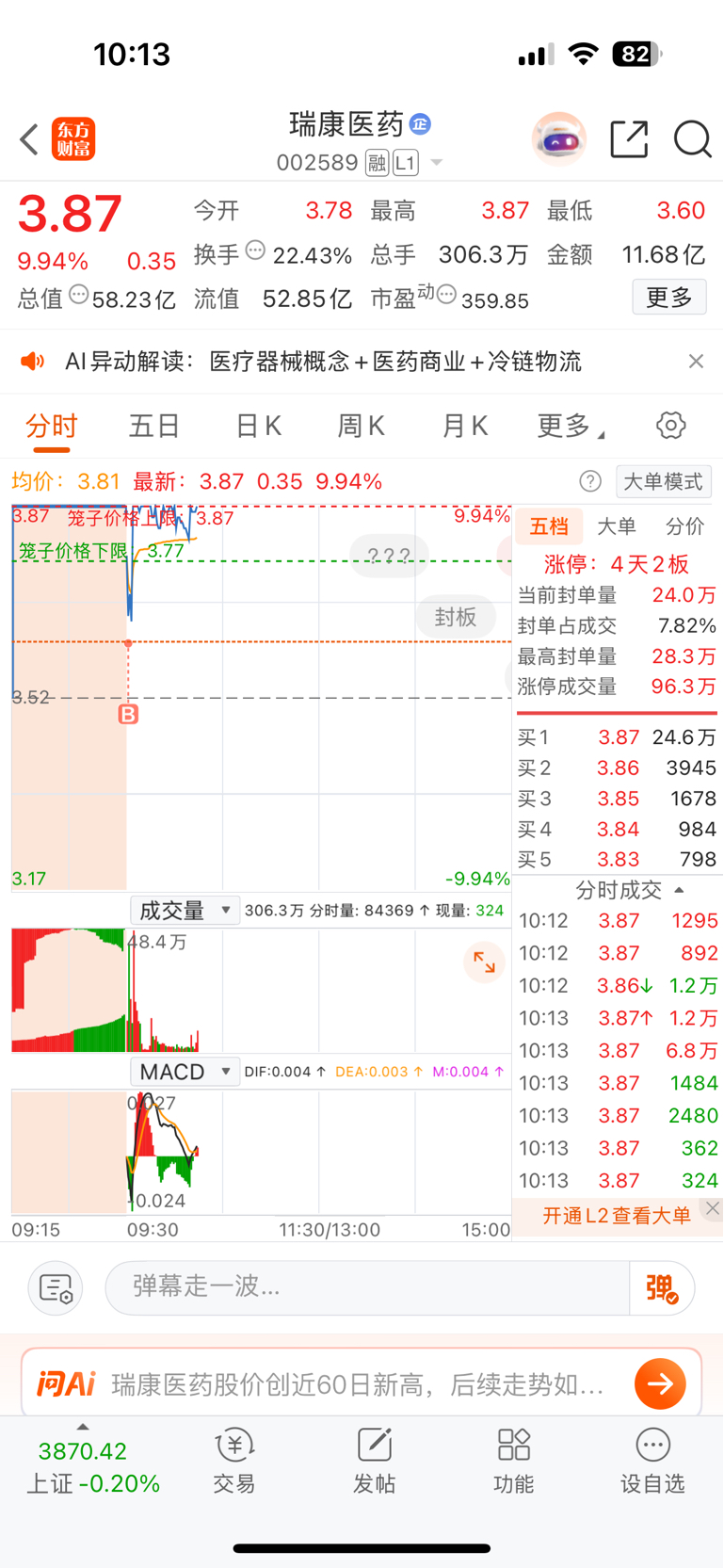 金新农我以为会走出喜鹊闹梅的趋势来,结果昨天没动力了,果断竞价卖出,低吸瑞康医药