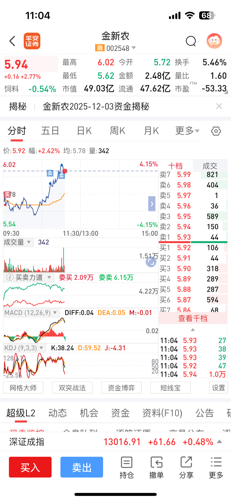$金新农(SZ002548)$ 好爽哦