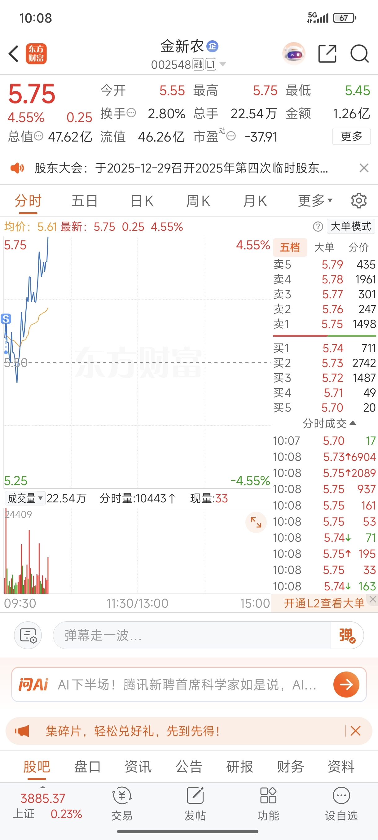 $金新农(SZ002548)$ 为了保住昨天的3个点,红开清仓了,还是胆子太小。