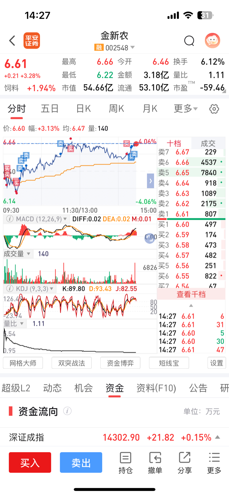 $金新农(SZ002548)$ 舒适!不大涨!不停涨!