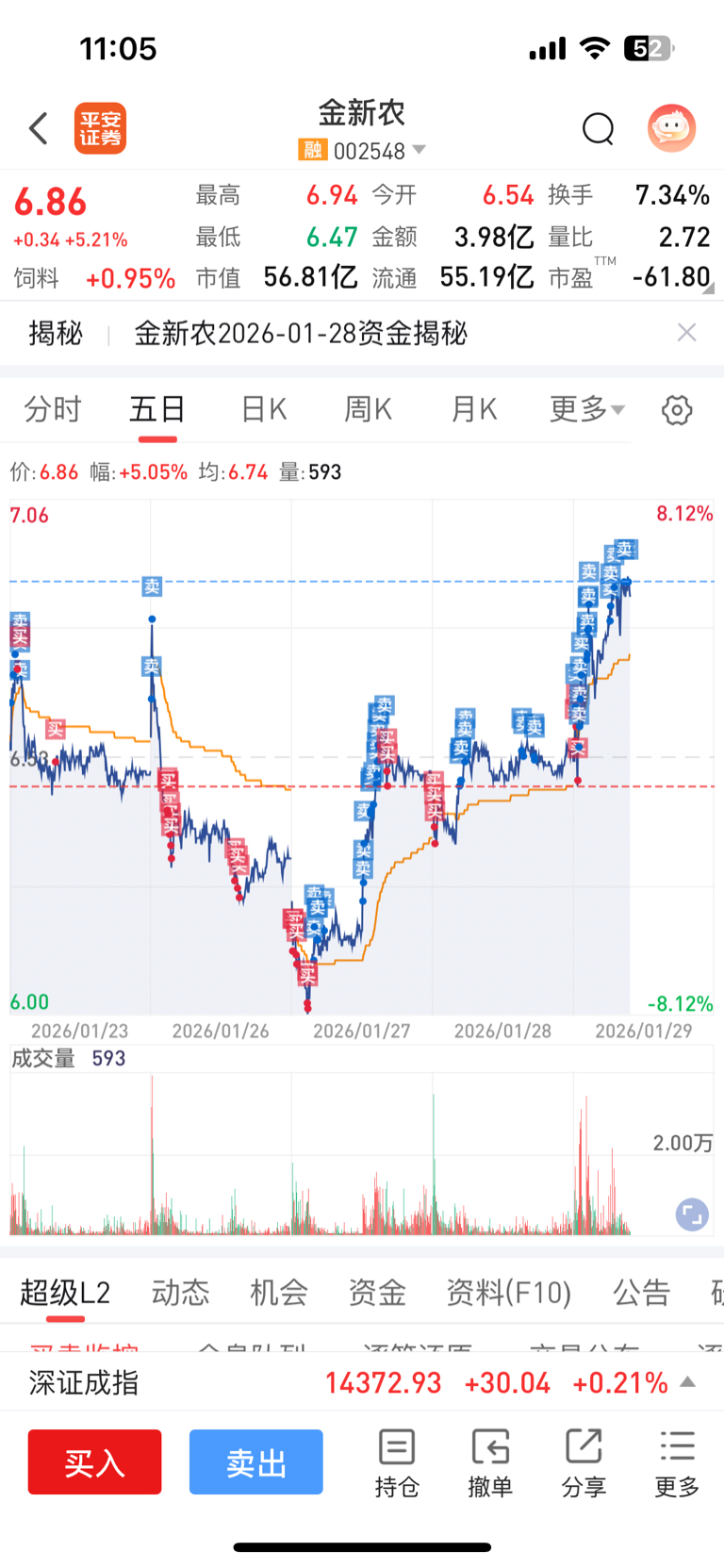 $金新农(SZ002548)$ 虽然还剩利润!今天也是以卖为主