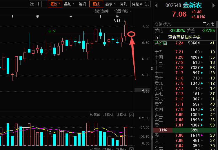 推演:明天短线回踩到6.77左右我计划参与!