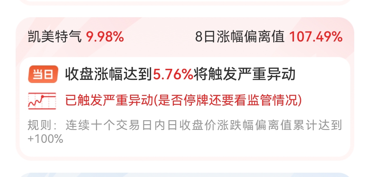 $凯美特气(SZ002549)$ 被监控了,跌停板了