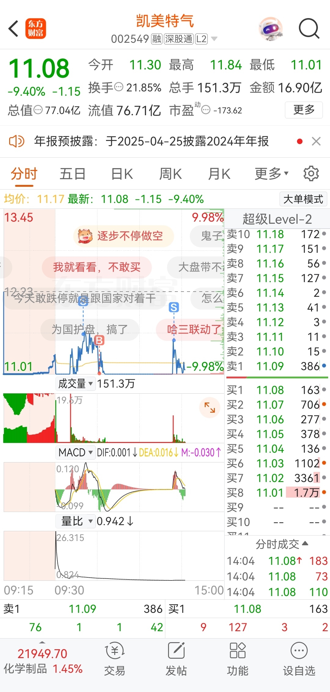 $凯美特气(SZ002549)$ 感谢大佬,给我机会出来,今天就这样了,明天低点再回来