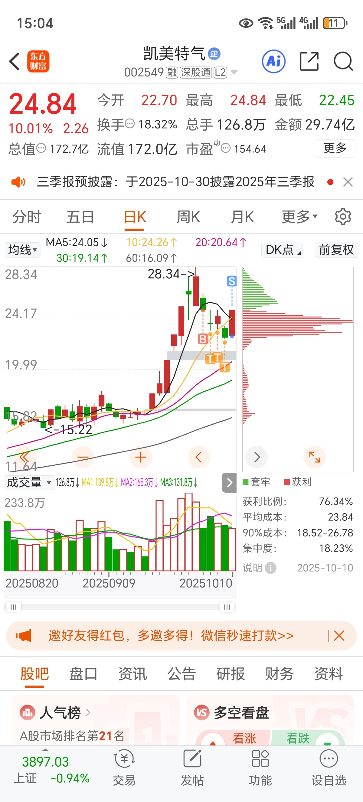 $凯美特气(SZ002549)$ 我成了大怨种了,t了三天,早盘感觉还挺强我还很犹豫没卖,下午开盘卖了,一卖就直线飞