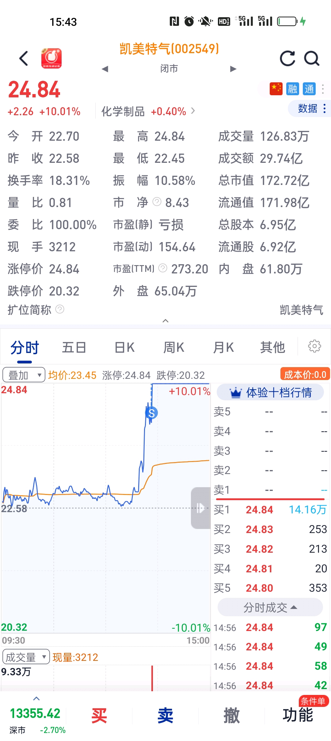 $凯美特气(SZ002549)$ 大意了,早上挂个涨停单就没管了,下午忙完一看,筹码没了,感觉错过了一套房。
