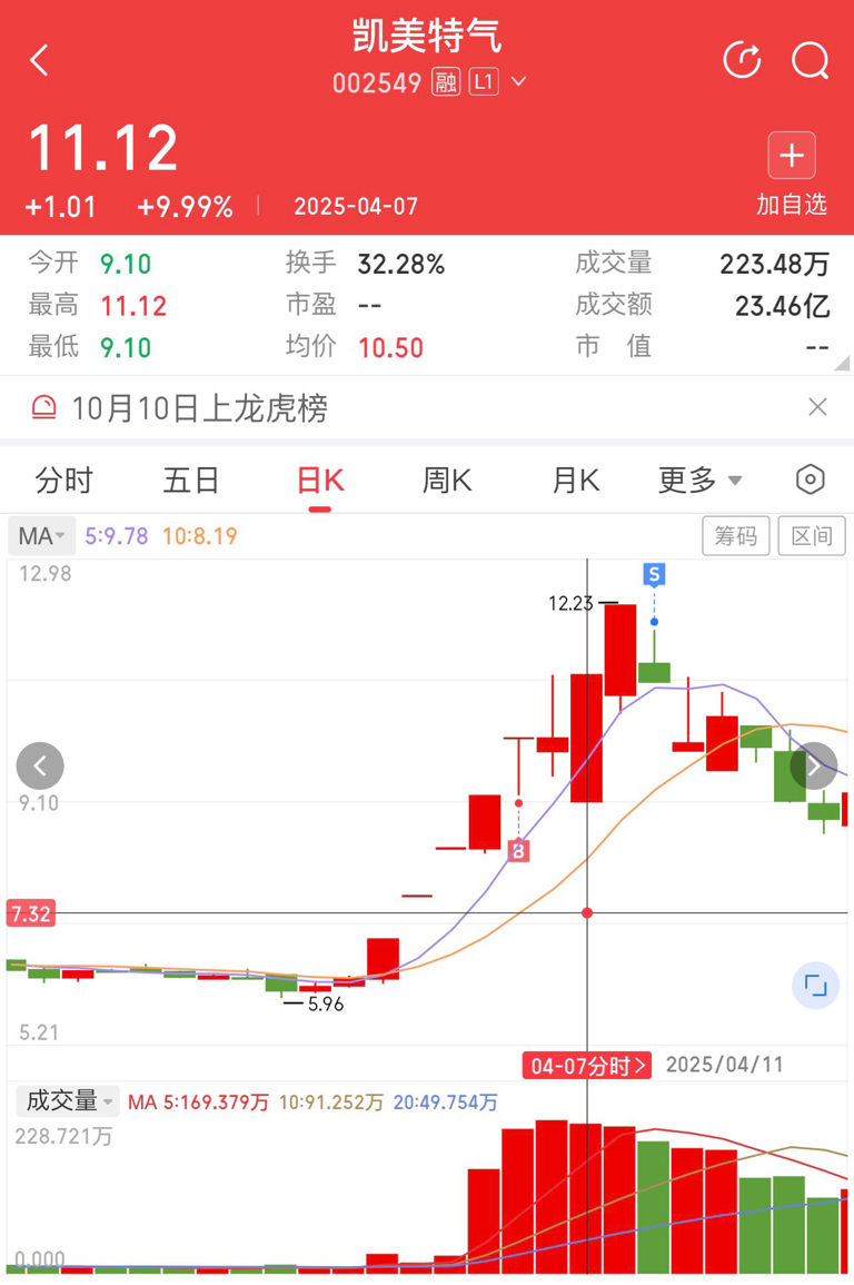 $凯美特气(SZ002549)$ 4月7日千古跌停的时候本猫在这里全仓吃了两天涨停,今天过来看看你又是涨停板,资金果然是有记忆的!车上的兄弟姐妹吃大肉!