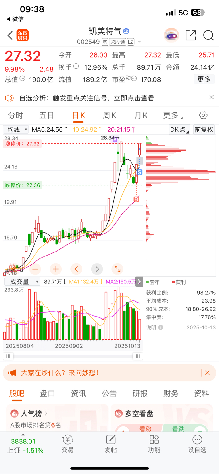 $凯美特气(SZ002549)$ 我每次卖都是卖飞,放心,里面的人,明天肯定有溢价,资金抱团