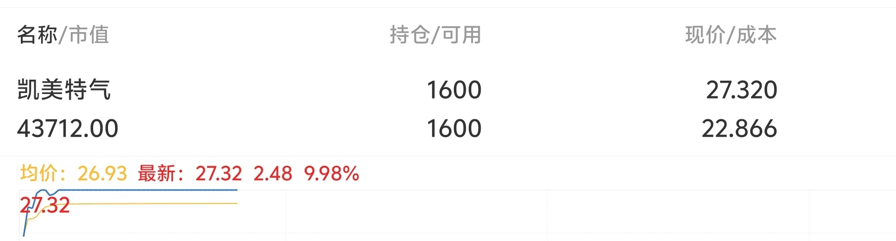 $凯美特气(SZ002549)$ 各位大佬好,我是新手小白,在乱买的情况下,买了这个股,吃了两天涨停,我是继续持有,还是什么时候卖出,希望各位给点意见,一定认真听取
