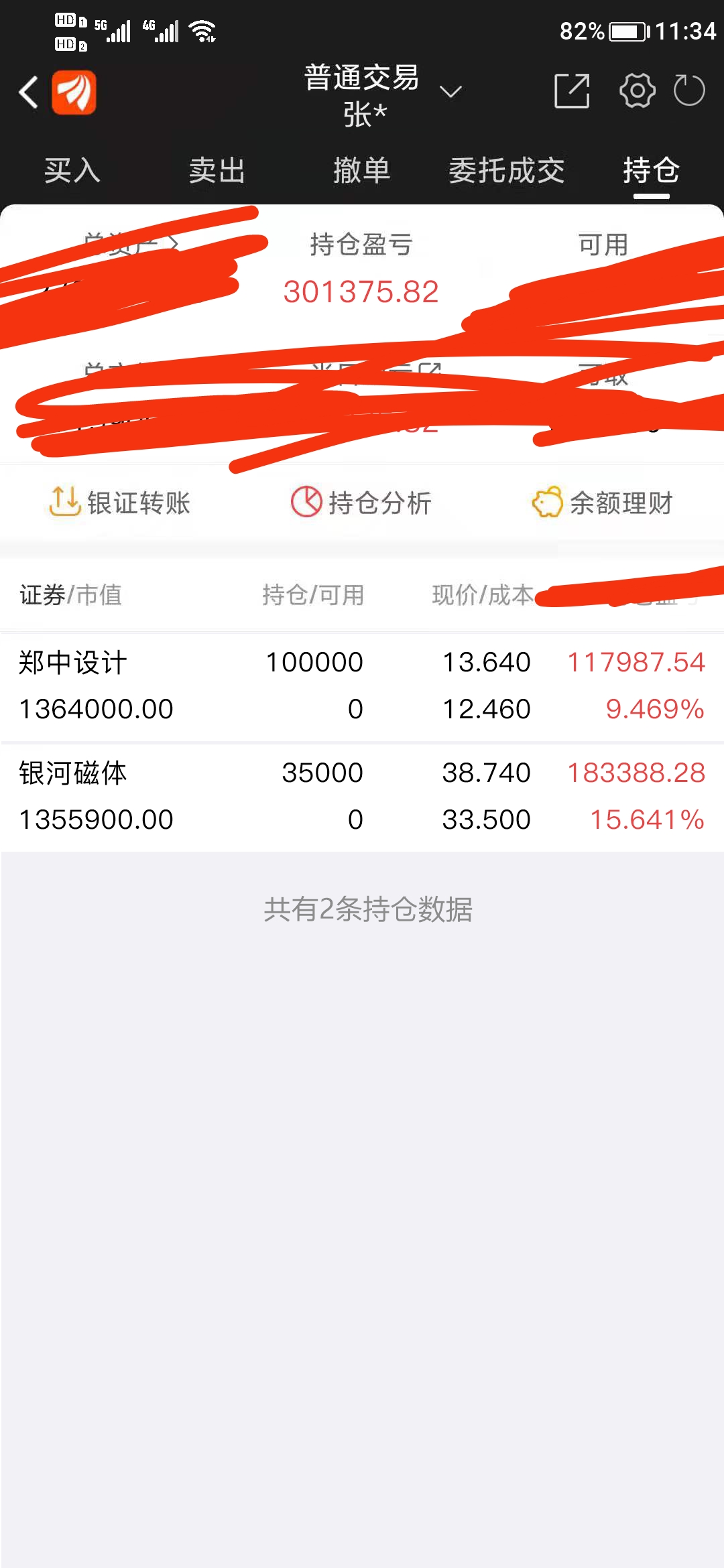 大家好,实盘记录第一天。介入:郑中设计,银河磁体今天发展都很不错,继续加油!大家