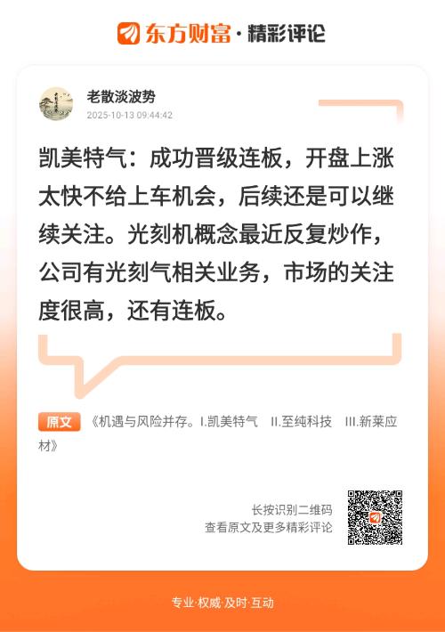 制造与能源板块持续受资金关注,凯美特气、至纯科技、新莱应材 等表现强势,若资金继续回流,短线仍有延续性行情可期。