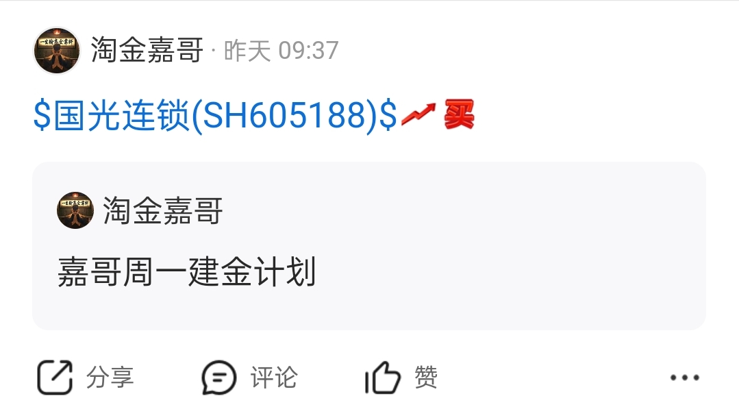 $国光连锁(SH605188)$ 昨天介入今日有盈利什么时候走都是对的