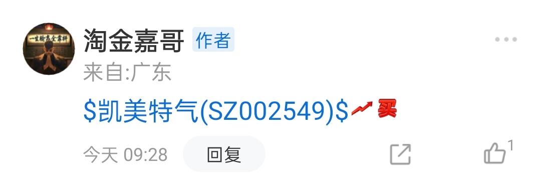 $凯美特气(SZ002549)$ 今日有些不及预期了让伙伴们失望了