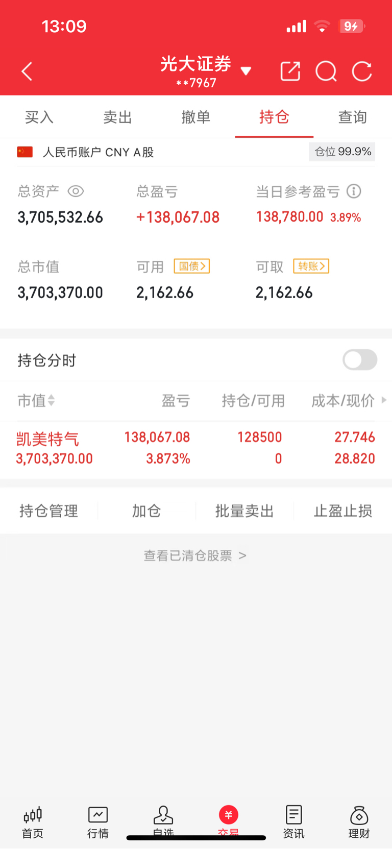 $凯美特气(SZ002549)$ 铁子们,午后开盘大盘继续震荡下行,但我们早盘布局的凯美特气却逆流而上行,哈哈,有跟上节奏的吗
